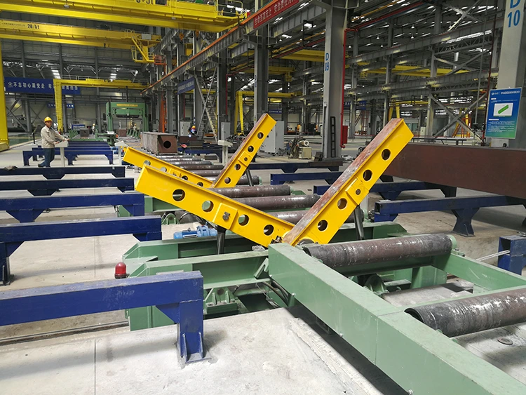 Jokaisessa sarjassa toimitetaan kaksi siirrettävää 180 °: n hydraulisen säteen läppääjää, joita käytetään pääasiassa työkappaleiden kääntämiseen hitsauksen jälkeen toisella puolella. Nosta työkappaletta työskennellessäsi rullapöydästä tai työkappaleen telineestä, ja pelkistin ajaa kahta kaatuvaa kiinnikettä liikkuakseen synkronisesti siirtääkseen työkappaleen rullapöydän tai työkappaleen telineen sivulle. Sitten kaksi hydraulista sylinteriä ajavat kaksi L-muotoista varsia kiertämään synkronisesti. Kun työkappale on kaatunut, se siirretään rullapöydän tai työkappaleen telineen keskelle ja sitten työkappale kuljetetaan seuraavaan prosessiin tai hitsataan.