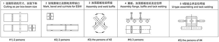 Laatikkopylväs (pylväs) koostuu "U" -muotoisesta palkista ja kansilevystä, joka on hitsattu ja muodostettu. Kokoonpanon aikana työkappale on paikallaan, pääkoneen liikkuu osissa ja kiinnityskokoonpanotila on sijoitettu tarpeen mukaan.